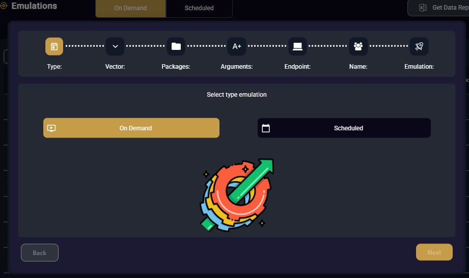 This option allows the user to create a new Emulation-on demand. This type of emulation requires that the EndPoint to which the user want to send the emulation is online. To create a new on demand Emulation, follow the steps below:&#x20;
